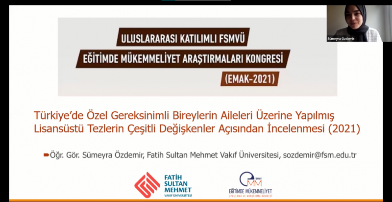 Fatih Sultan Mehmet Vakıf Üniversitesi Eğitimde Mükemmeliyet Araştırma ve Uygulama Merkezi’nin (EMAM) hazırladığı Eğitimde Mükemmeliyet Araştırmaları Kongresi (EMAK-2021) “21. Yüzyılda Eğitim: Dönüşümler” temasıyla 18-19 Aralık 2021’de çevrimiçi ortamda gerçekleştirildi.